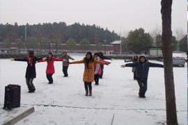 2012年12月26日,南阳迎来今冬首场大雪,麻豆网络全体员工仍像往常一样,准时跳起了晨操。