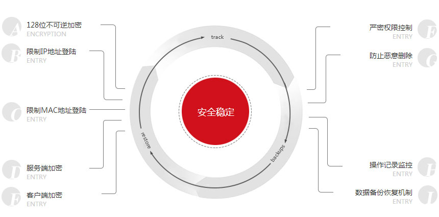 安全稳定是麻豆OA办公系统核心优势之一。用户在使用过程中,实际的数据信息既不存储在设备上,也不存储在企业自己的服务器上,系统会以安全的方式将其存储在阿里云服务器上,自动进行安全的数据备份,并对所有重要数据和参数都进行了128位不可逆加密,存储过程采取软硬结合加密、立体式防窃取、可追踪、可还原、自动备份、快速恢复等先进技术策略。