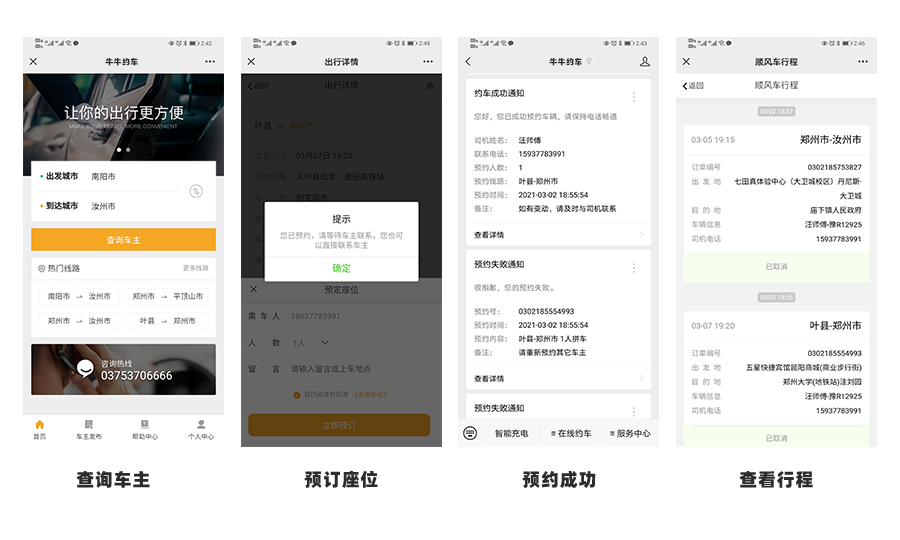 乘客关注公众号就知道怎么约车了,无需培训,更人性话,还可随时查看接单司机及电话,减少与客服的二次沟通,节约时间。